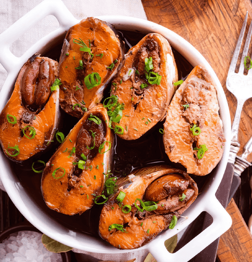 Homemade herring preserves are a traditional Russian dish that combines simplicity and rich flavor. This recipe has roots in Russian cuisine, where salted and pickled fish have always held a special place. Herring infused with the aroma of bay leaves, pepper, and delicate chicken broth acquires an amazingly soft texture and deep flavor enriched with notes of black tea. Slow cooking makes the fish tender and aromatic, while green onions add freshness when served. These preserves can be served as an independent snack or used as a base for sandwiches and salads, pairing wonderfully with rye bread and boiled potatoes. Homemade herring preserves are a harmony of flavors and simplicity in preparation, allowing one to enjoy the classics of Russian cuisine.
