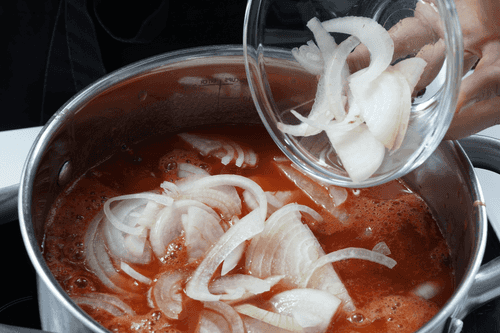 Slice the pepper and add it to the pot. All vegetables should fill the pot, but there should be enough space to stir them.