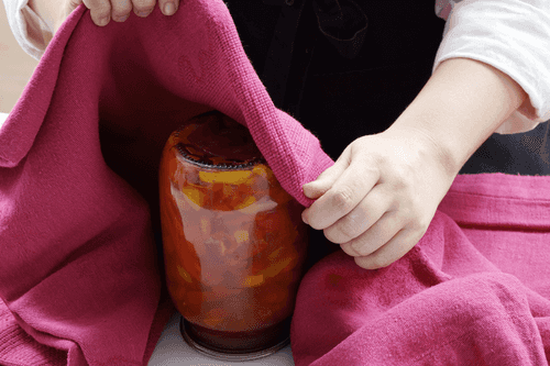 Pour some juice into the jars, close them and turn them upside down. Cover with a towel and keep like this until completely cool. The finished lecho can be consumed with meat and fish, as a side dish, or added to soups and stews.
