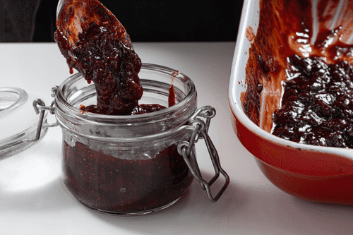 Transfer the hot jam into sterilized jars.