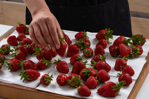 Dry the strawberries on paper towels.