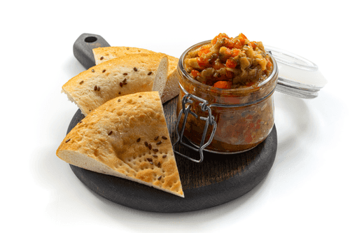 Serve the prepared eggplant caviar immediately or store it in the refrigerator for a week.
