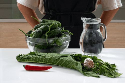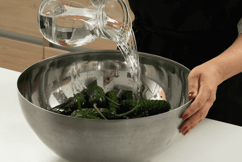 Soak cucumbers in cold water for 4 hours. If the cucumbers are fresh from the garden, they can be left for 2 hours.
