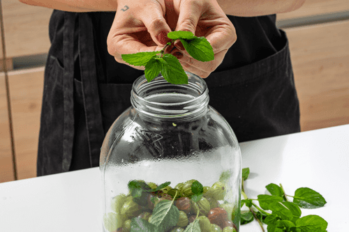 Add mint leaves to the jar.