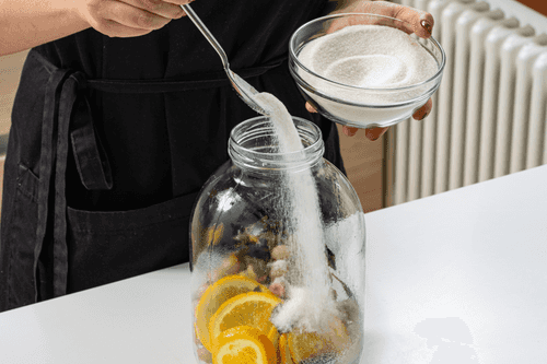 Pour sugar into the jar.