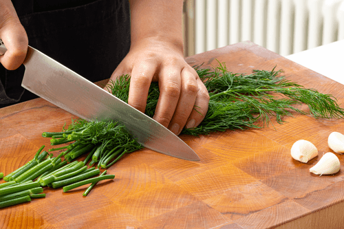 Chop garlic and dill coarsely.