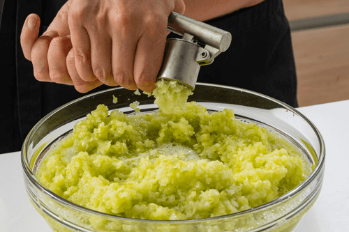 Add the pressed garlic to them.