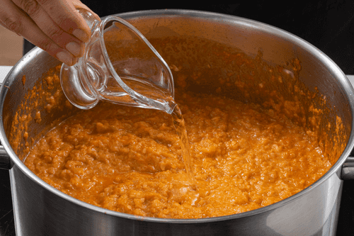 Pour in vegetable oil, add salt and sugar. Place on heat, bring to a boil and simmer for 40-50 minutes.