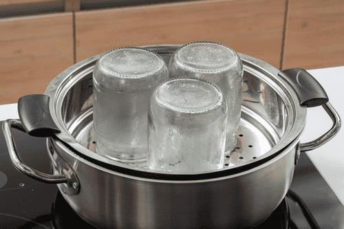 Sterilize jars and lids over steam for 15-20 minutes.