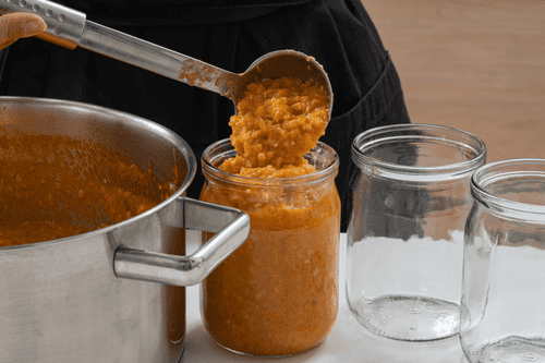 Pack the caviar into jars, seal them, turn them upside down, and cover with a blanket until completely cool.