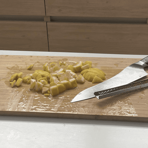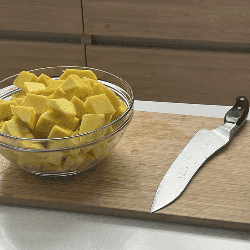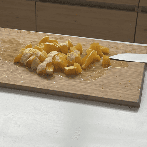 Cut the mango into large pieces.