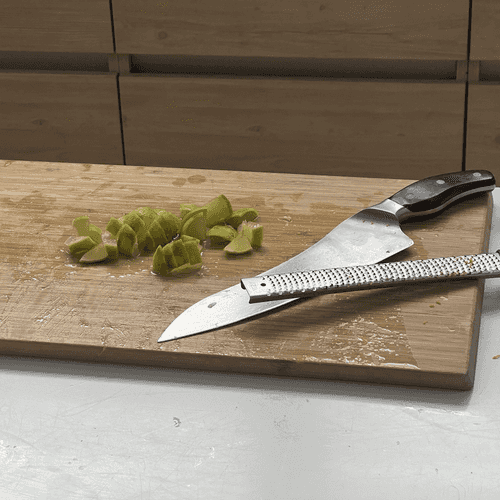 Zest the lime and cut it into small pieces.