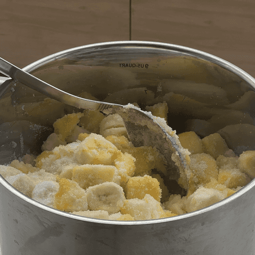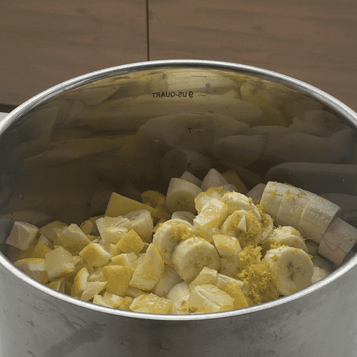 Put all the ingredients in a large pot (it should be about 6 liters of chopped fruits).