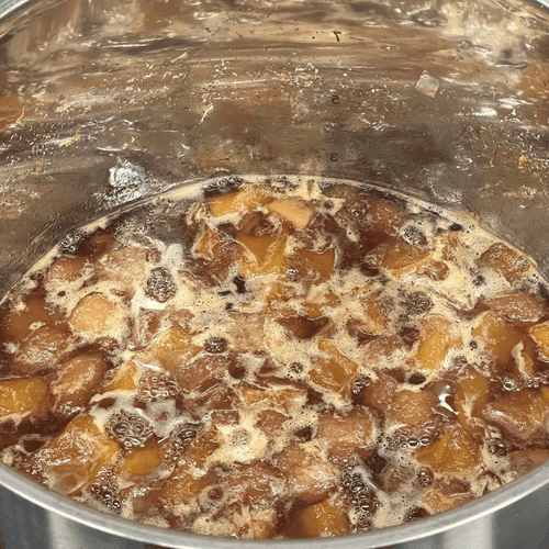 After the juice extraction process is complete, place the pot with fruits on medium heat and bring to a boil.