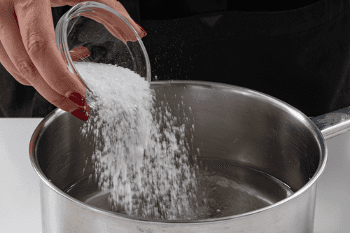 Pour 750 ml of water into the pot and dissolve salt in it.