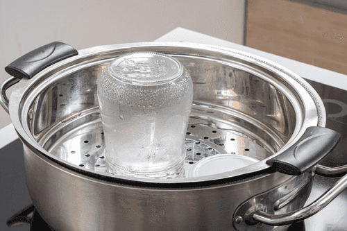 Sterilize the jar and lid over steam for 15-20 minutes.