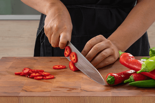Wash the pepper, dry it, and cut it into rings.