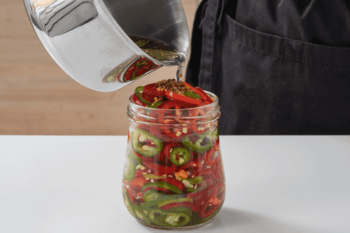 Pour the hot marinade into the jar.