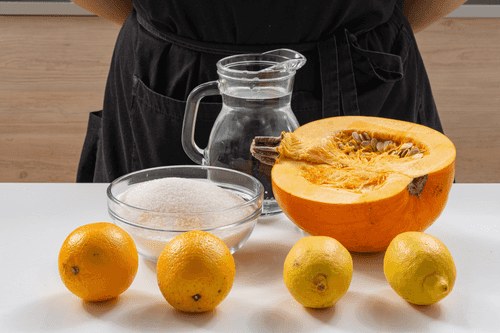 Place the pumpkin and citrus fruits in a pot and cover with water.