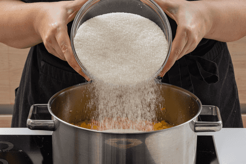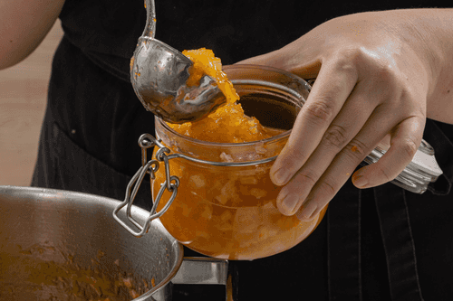 Pour the jam into sterilized jars, seal them, and let them cool completely.