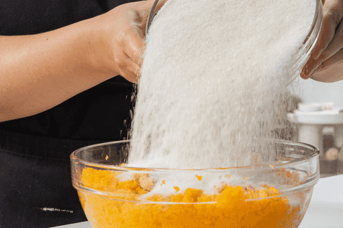 Pass the pumpkin flesh and lemon through a meat grinder.