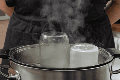 Sterilize jars and lids over steam for 15 minutes.