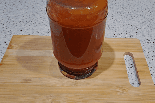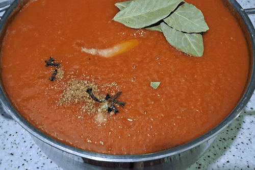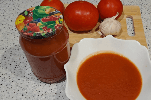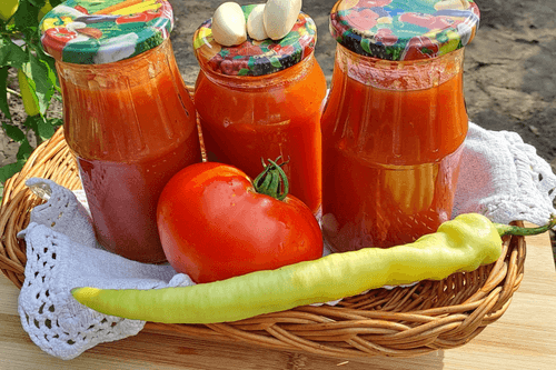 Pour the hot ketchup into jars. Seal or screw on metal lids. Turn them over to ensure the jars are well sealed.