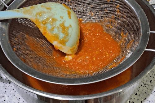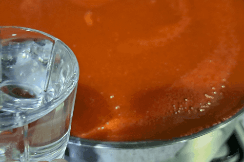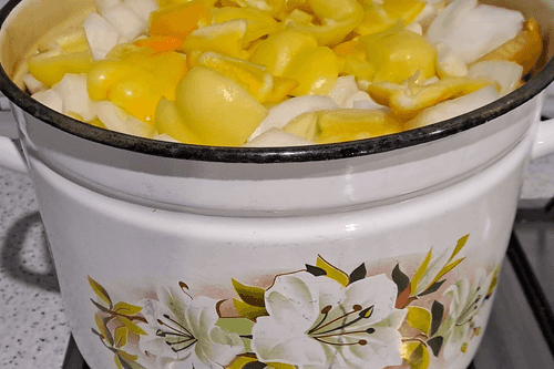 Cut the hot pepper into strips and add it to the pot with the vegetables. You can adjust the amount of hot pepper depending on how spicy you want the ketchup to be.
