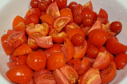 Slice the tomatoes into wedges, removing the stems. Cut medium-sized fruits in half, large ones into quarters, and carefully pierce the small ones with a knife.