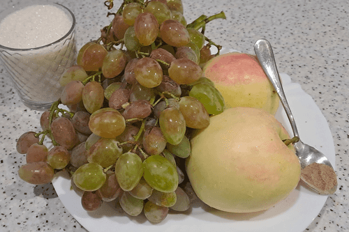 Grape compote for the winter with apple and cinnamon without sterilization