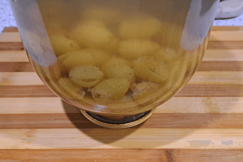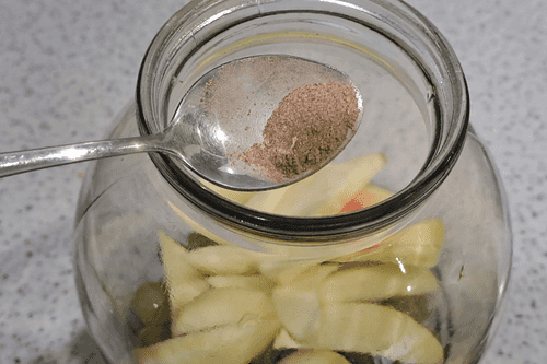 Carefully pour the ready marinade into the jar while hot. Seal the jar with a metal lid. Turn it upside down to ensure the lid is well sealed.