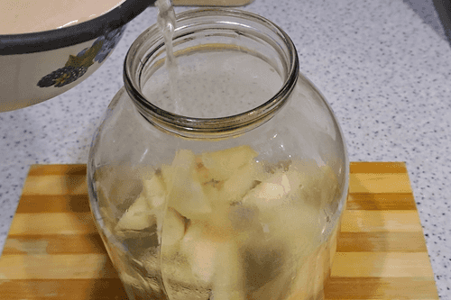 Carefully pour the prepared ingredients into the jar with boiling water.