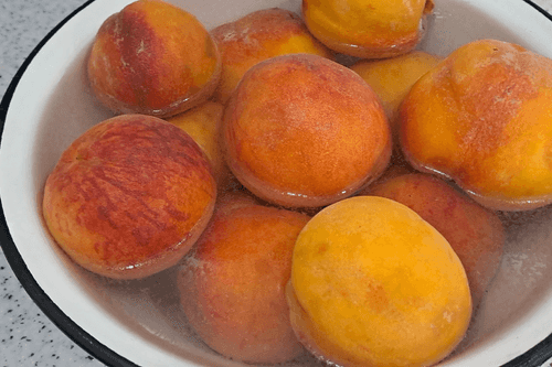 Remove the pits and any excess from the peaches.
