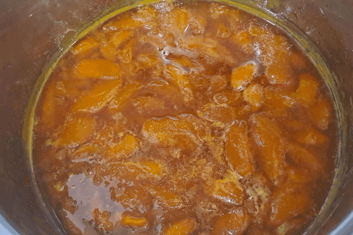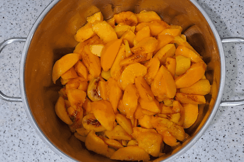 Leave the pot with peaches and sugar for about 30-40 minutes until the peaches release their juice well.
