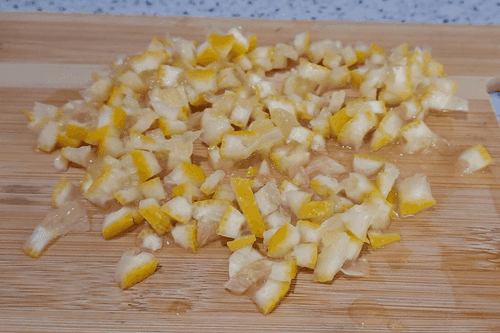 Wash the lemon well and cut it as finely as possible.