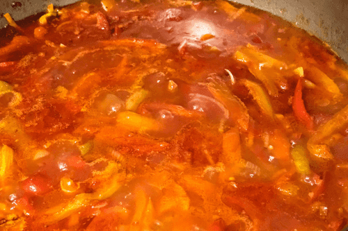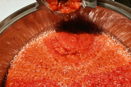 Grind tomatoes and hot peppers through a meat grinder. Cook for 15 minutes.