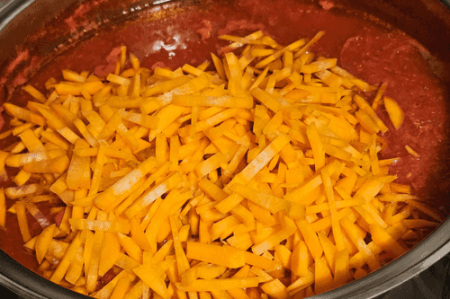 After that, put chopped sweet pepper and chopped onion in the pot and boil for another 30 minutes.