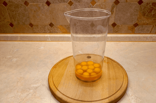 Place the blender in the cup so that the eggs are completely under the blender's blade.