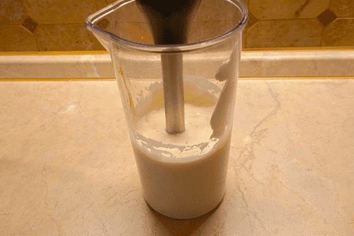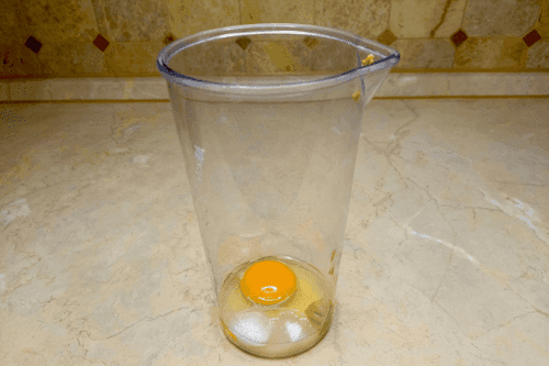 Place the blender in the cup so that the egg is completely under the blender's foot.