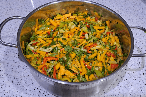 Frozen pumpkin with parsley and sweet pepper is a versatile preparation that can bring vibrant colors and freshness to winter dishes. This recipe, originating from European cuisine, preserves the natural sweetness of pumpkin, the spicy note of sweet pepper, and the aromatic scent of parsley. This mixture is perfect for soups, vegetable stews, meat dishes, and even casseroles. Pumpkin adds tenderness and a light sweetness, parsley refreshes, while pepper adds a slight spiciness. Freezing helps vegetables retain their texture and beneficial properties, allowing for rich and aromatic dishes even in the coldest season. It's a true find for those who want to enjoy summer flavors all year round.
