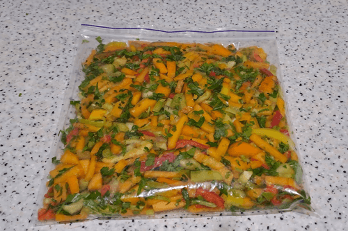 Put the vegetable mix into bags or containers.