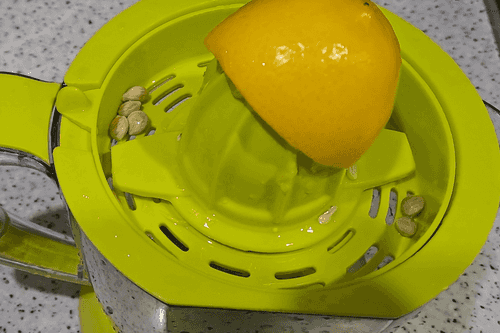 Wash the lemon, cut it in half, and squeeze the juice in a convenient way.
