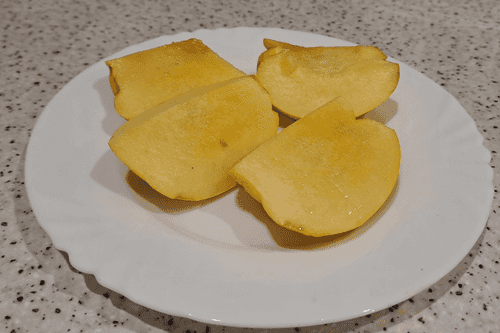Wash the quince well under running water, cut into four pieces, and remove the core.