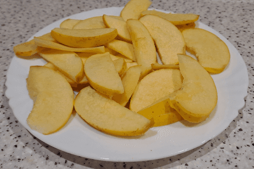 Cut the prepared quince into wedges.