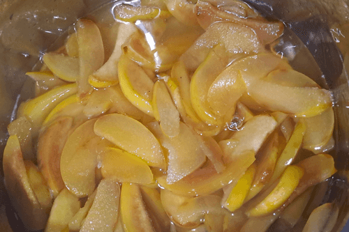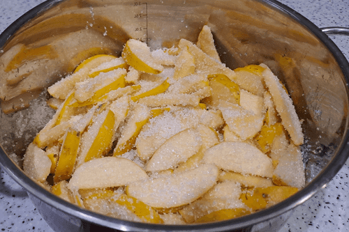 Place the chopped quince in the container where the jam will be cooked.