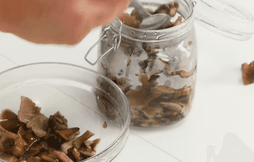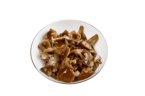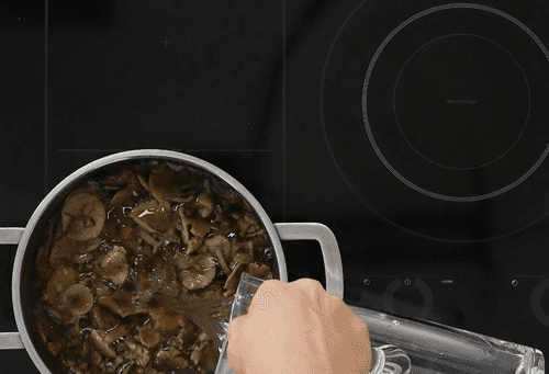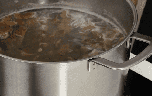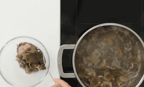 Drain the water, wash the pot, put the boiled mushrooms in it, and pour in a liter of water.