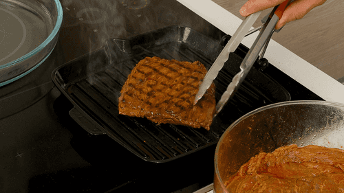 Mix the juice of one lime, a teaspoon of cumin, ground chili, red bell pepper, black pepper, salt, and 80 ml of vegetable oil.