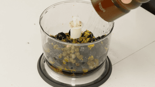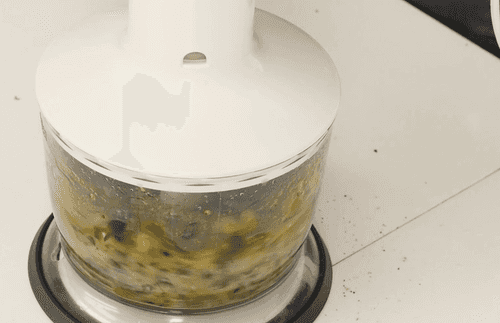 Chop garlic and anchovies together until pureed. This way, the garlic will release more juice.