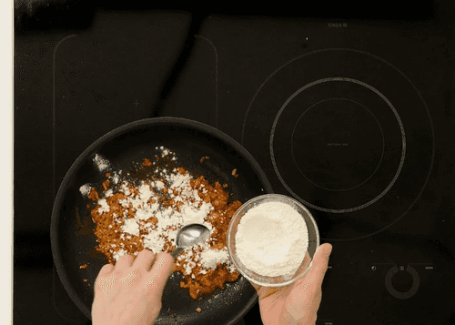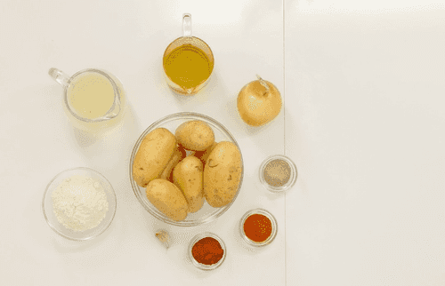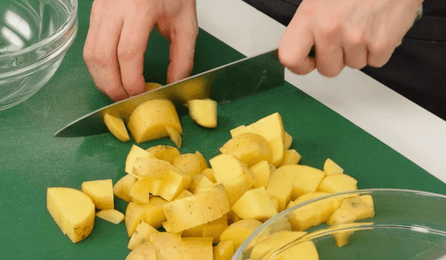 Cut the potatoes into bite-sized pieces, throw them into boiling water, and cook for 5 minutes. Then drain the water and set the potatoes aside while the sauce is being prepared.