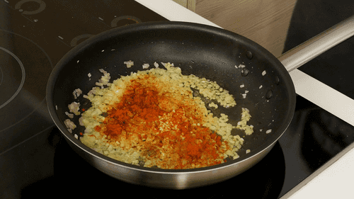 Add minced garlic, paprika, cayenne pepper, and white pepper, and mix.